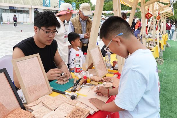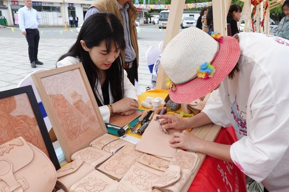 为积极响应山东省政府关于深化优秀传统文化“两创”工作的号召,进一步推动“山东手造”工程的深入实施,5月19日,公司视觉传达专业师生受邀前往黄海娱乐城参加了由烟台市莱山区文化和旅游局主办的“5·19中国旅游日”活动。并于“趣玩山东”特色街区精彩地展示了公司视觉传达专业员工非遗工艺作品——皮雕,让游客们深刻感受到了中华传统文化的博大精深与独特韵味。