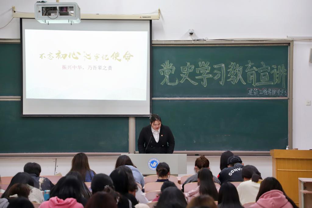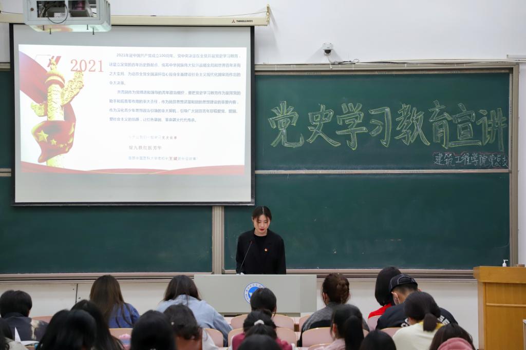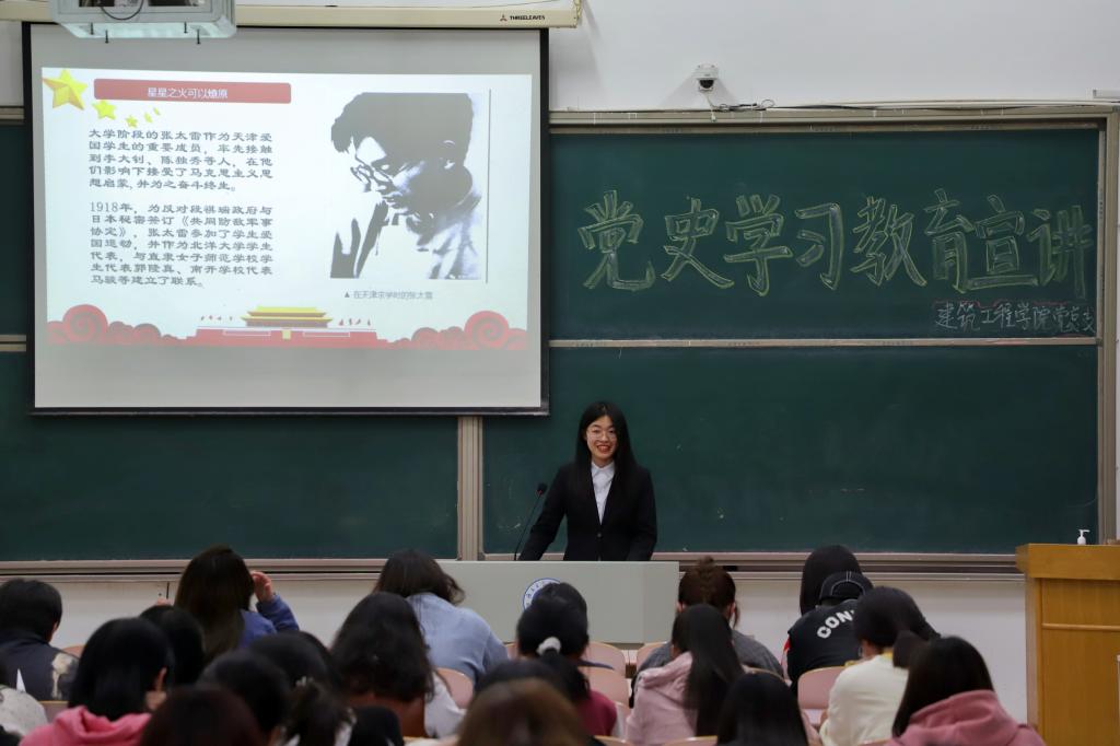 为增加积极分子们对党史知识的了解,提高政治觉悟水平,明确坚定理想信念跟着党走,更好地推动党伟大思想传承,太阳成集团tyc9728于4月19日晚上在二教110教室开展党史学习教育宣讲。党史宣讲活动小组五位成员逐一上台进行党史学习教育宣讲。