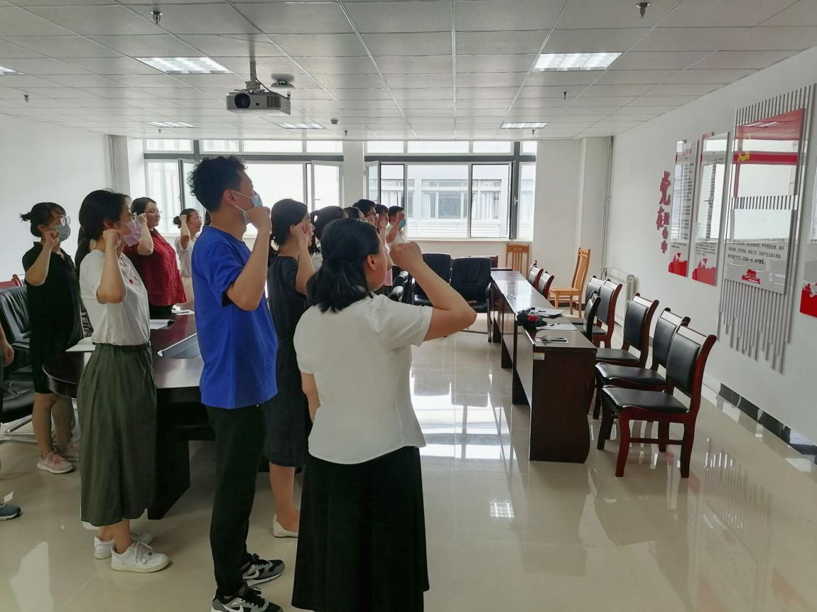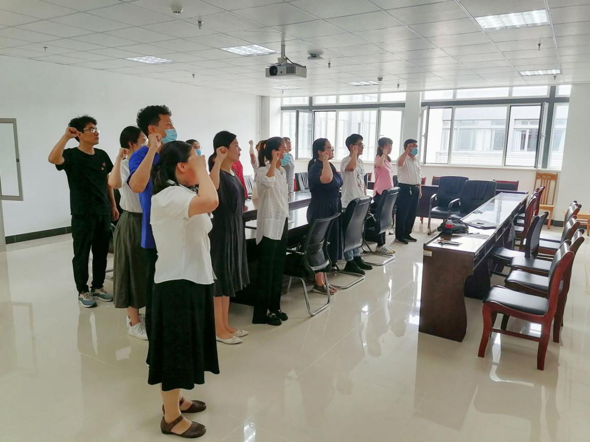2022年7月4日,太阳成集团tyc9728教师党支部举行主题党日活动,在党旗面前重温入党誓词。公司党总支书记裴书生、教师党支部书记王伟萍及全体教师党员参加了宣誓仪式。