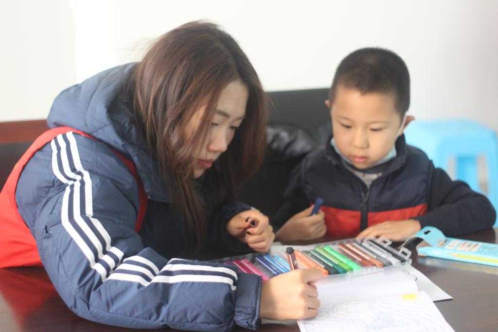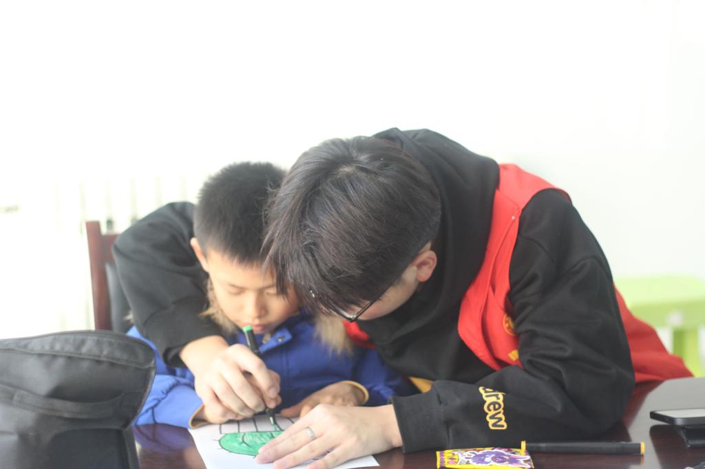 课堂上,孩子们以饱满的热情投入绘画,俨然是一个个小画家,每一位都展示出了丰富的想象力、细致的观察力和超凡的思维能力。他们用自己的双手和童真之心绘画出自己心中色彩。志愿者为孩子们讲解描边、上色的小技巧,鼓励发散思维,用自己喜欢的颜料为整幅画上色,真正做到了激发创意。