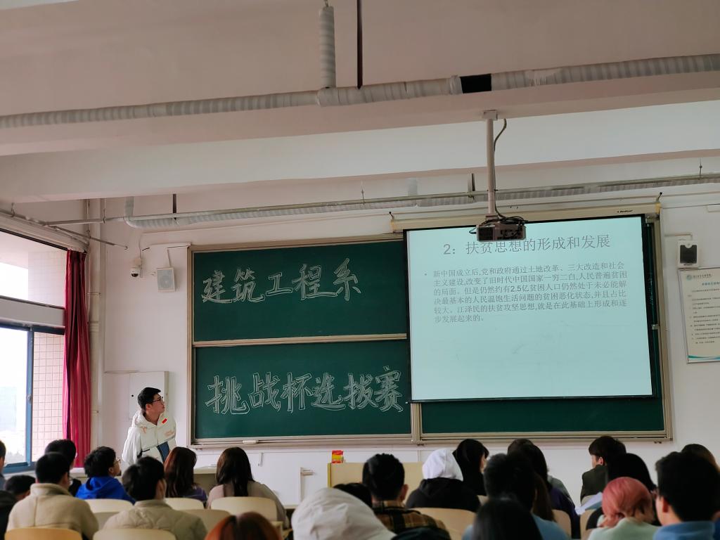 在活动开始之前,臧延云老师对此次活动进行发言,强调了“挑战杯”实践活动的重要性以及对参赛同学日后发展的积极影响。老师的发言再一次阐释了此次活动的重大意义,为此次活动奠定了良好开端。活动正式开始,各支参赛队伍以PPT的形式向评委老师们详尽阐述了他们学术作品的灵感来源、研究计划和现实意义,并在答辩环节结束之后认真回答了评委老师的提问。答辩过后,针对每支团队的作品,评委老师就其思路、方法、可行性等方面中给出了一些意见。选手们表示,评委中肯的意见让他们获益匪浅,并看到了自己作品的提升空间,积累了很多经验。