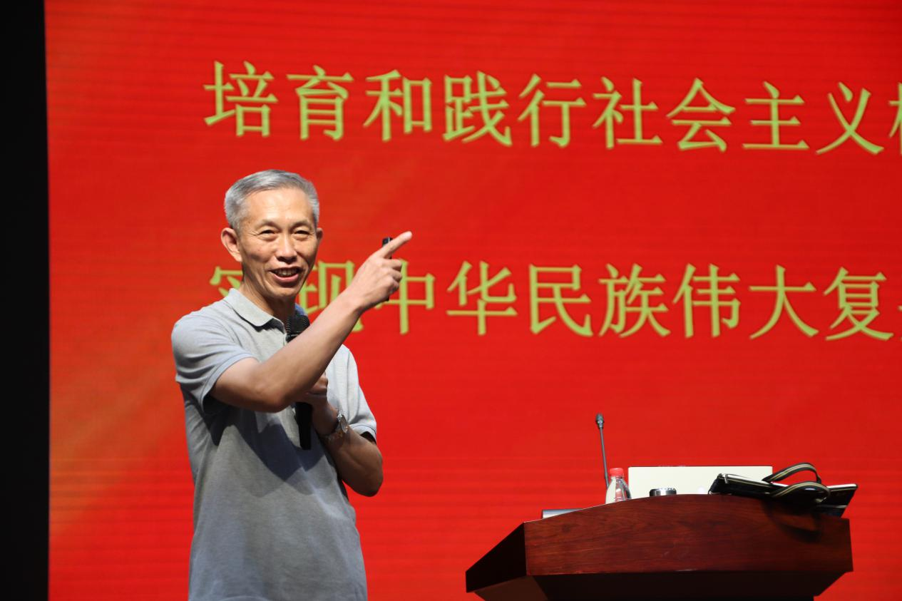 大会开始,杨森教授分别从培育和践行社会主义核心价值观和实现中华民族伟大复兴的中国梦,分上下两篇为同学们点明主题,用风趣幽默的语言与同学们展开讨论,鼓励同学们勇担起身上的重任,多学习多了解,为了青春梦想而奋斗。