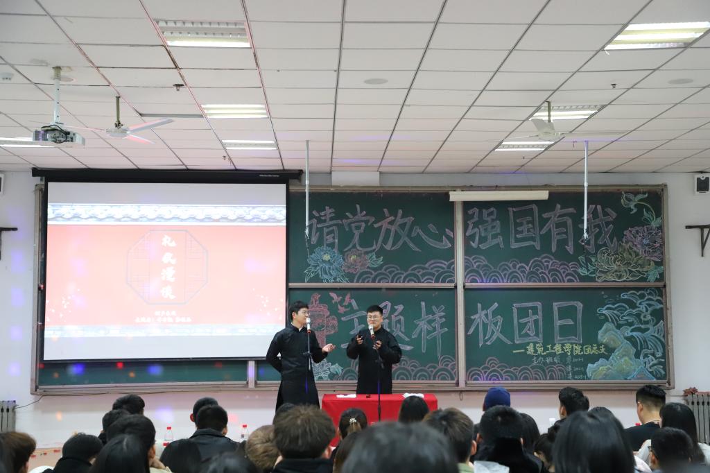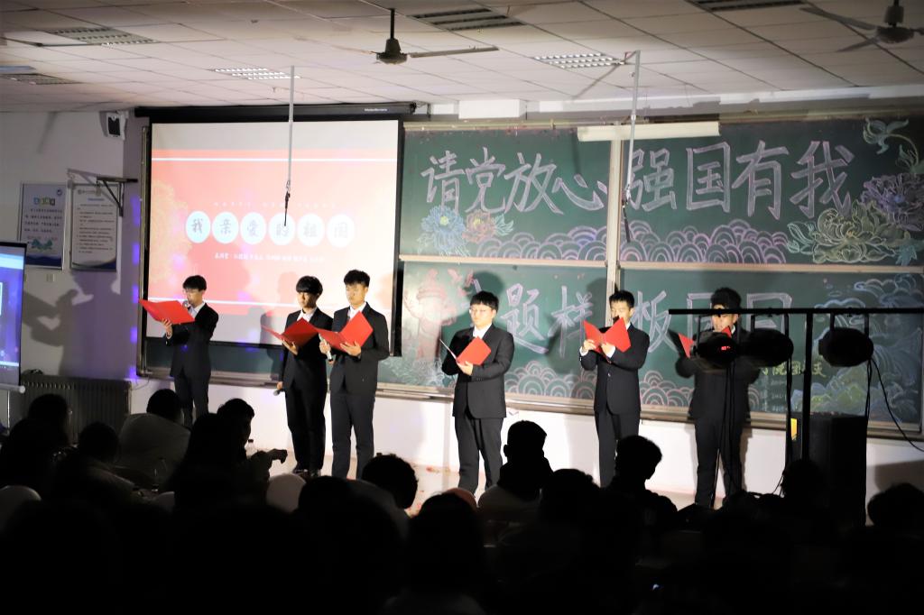 本次团日活动以《归》唯美的舞蹈旋律拉开序幕,青春气息扑面而来。接着爆笑全场的小品和相声陆续登场,将欢乐带给大家的同时也反应了社会百态。活动中还穿插着游戏环节,有效地促进现场互动,带动气氛。在一阵欢呼声中,歌曲、朗诵、合唱等精彩表演再一次展现了同学们的青春朝气,让同学们在活动中增强爱国情怀,感受时代命脉,畅游在红色的海洋。