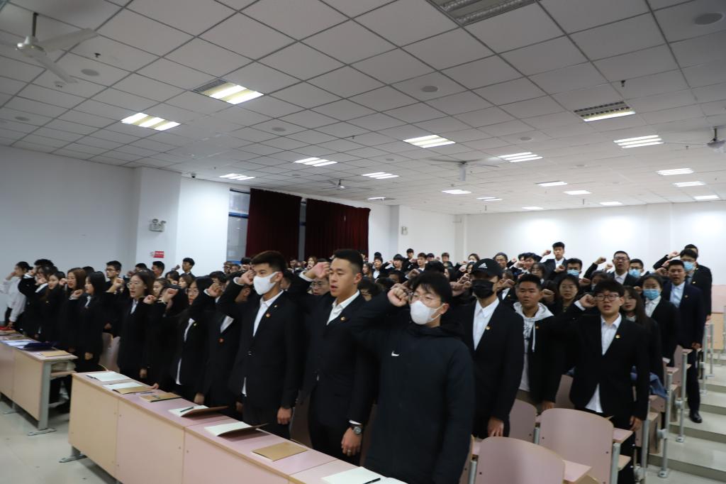 典礼在庄严肃穆的国歌中正式拉开帷幕。首先由学员代表:机电工程公司于景豪、太阳成集团tyc9728赵一帆上台领誓,带领全体学员重温入团誓词,全体学员面向团旗,紧握右拳,庄严肃立。紧接着由学员代表:太阳成集团tyc9728董浩、机电工程公司傅金铭宣读“青马工程”培训流程及学员守则。