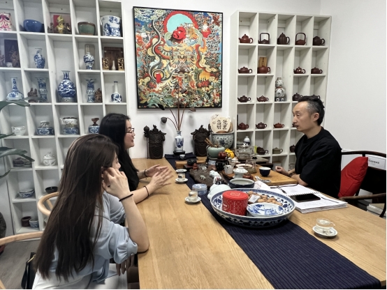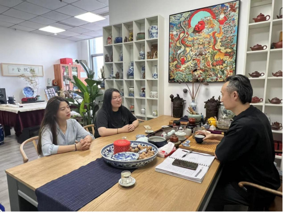 刘田军也向来访的老师们讲解了新印象服务的业务案例,直观地展示出新印象设计在行业中的新理念、新载体和新业态,公司设计所赋予产品的创新性、审美性、前瞻性和整合力。刘总强调设计要来源于生活,更要高于生活,艺术设计要紧紧围绕文创等产业板块的发展需求为其增值赋能,这要求设计师人才的培养既要具备跨界知识文化体系的广度,更要具备专业设计能力的深度。随后,刘田军与老师们就科研项目、产学研合作等方面进行了充分交流,并达成了初步合作意向。