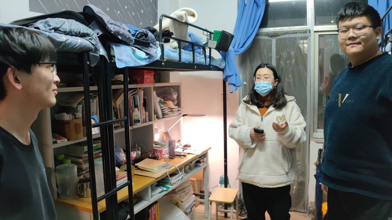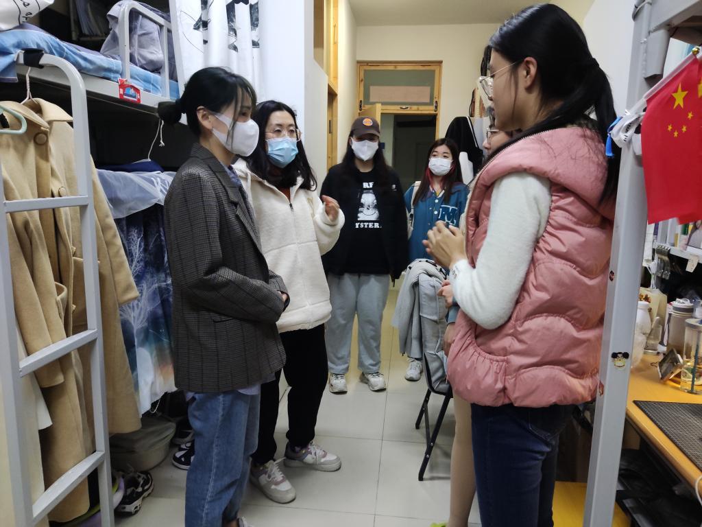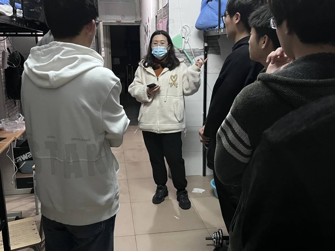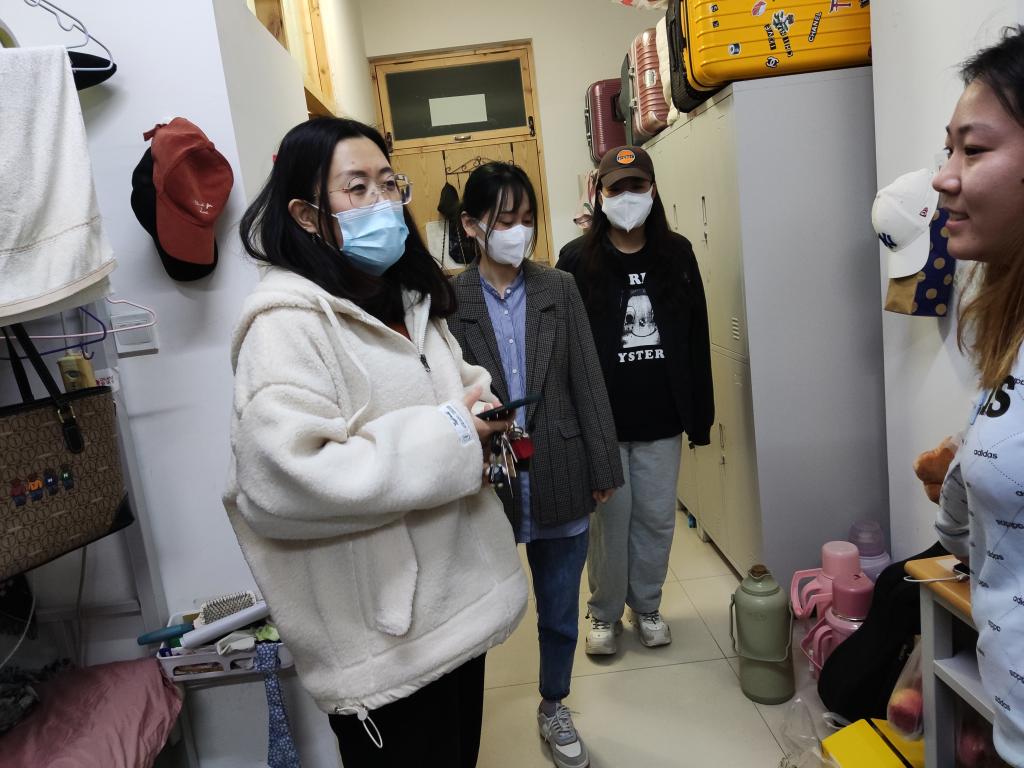 最后,老师们叮嘱各位同学,在疫情期间要注意个人卫生,开窗通风,保持宿舍内干净整洁,同时提醒同学们在校园内一定要佩戴好口罩,积极配合医务人员的核酸检测工作,做到严格把控时间,保持时间观念。