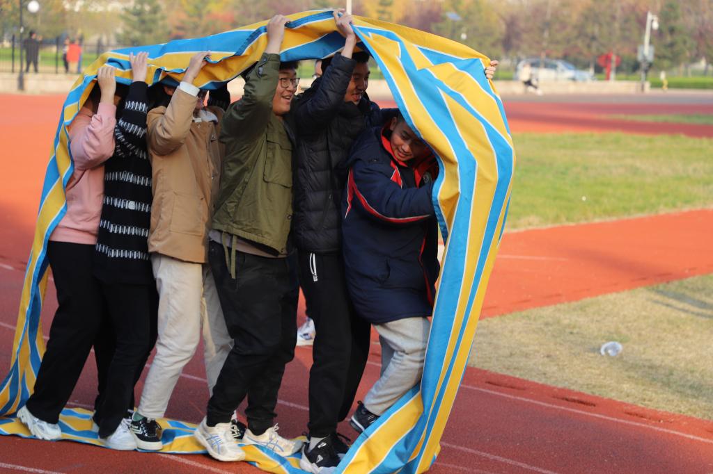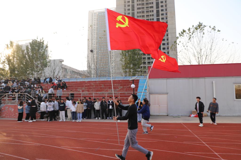 本届运动会以班级为单位组成8个队伍,共设置四人三足、摸石过河、颠球接力、毛毛虫、终点冲刺和党旗代代传6个比赛项目。比赛过程中,场上同学精诚合作、相互鼓励;场外观众摇旗呐喊、加油助威,整个会场气氛热烈,充满欢声笑语。
