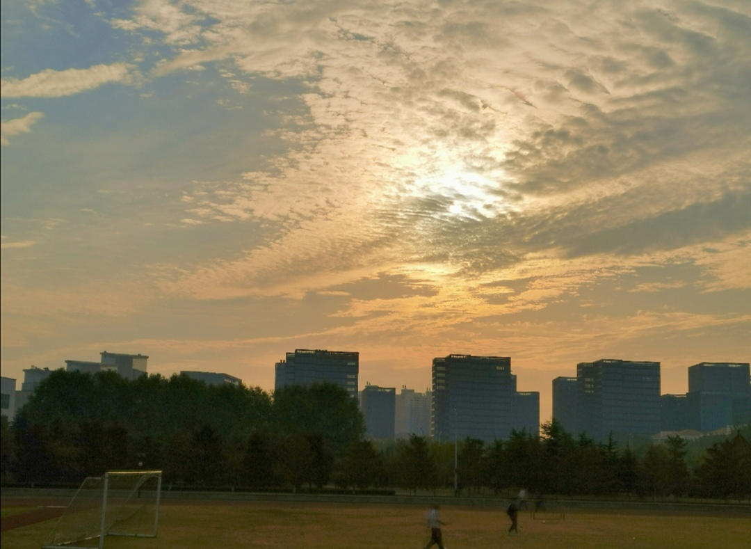 烟台的九月间,骄阳依然似火。中午时分,太阳把树叶都晒得蜷曲起来,知了扯着长声聒个不停,给闷热中军训的我们更添一丝烦躁。秋末的黄昏总是来的很快,还没等山野上被日光蒸发起的水汽消散,太阳就落下了西山,我们也结束了军训进入了正式的老员工活。
