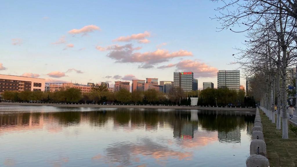 你见过晨曦中的文经吗?奔跑在操场上,太阳从东南方的地平线升起,曦光洒满整个场地。你见过中午时分波光粼粼的琴心湖畔吗?漫步在湖畔,那点点波光耀眼的夺目,人与文经皆醉。你见过满是金黄的街道吗?去二教的路上,从湖畔这头,到湖畔那头,黄透的银杏叶一路艳烧到天边。你驻足看过夜晚的文经吗?灯火通明的教学楼,让你觉得这里没有末路,你从不曾孤独。远山的景,无需浓墨重彩,便可以入眸,近水的影,只需云淡风轻便足以入心。这些也已然已成为了我进入文经生活的一部分。