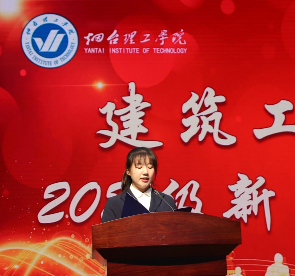 其次是由来自建筑学专业的张靖宜代表老生发言。她希望新生们在大学的生活中能够融入集体,学会独立,并通过校园文化活动全面提升自己,成为高素质融合性人才。