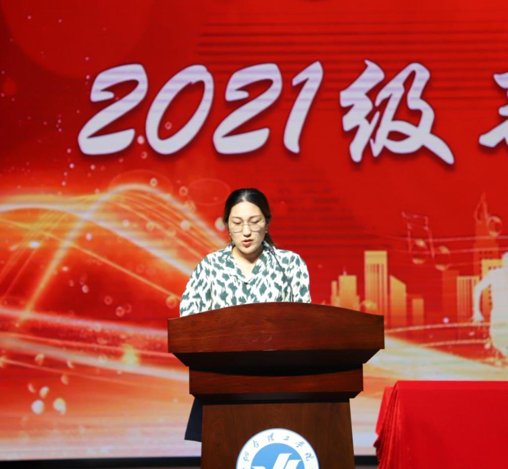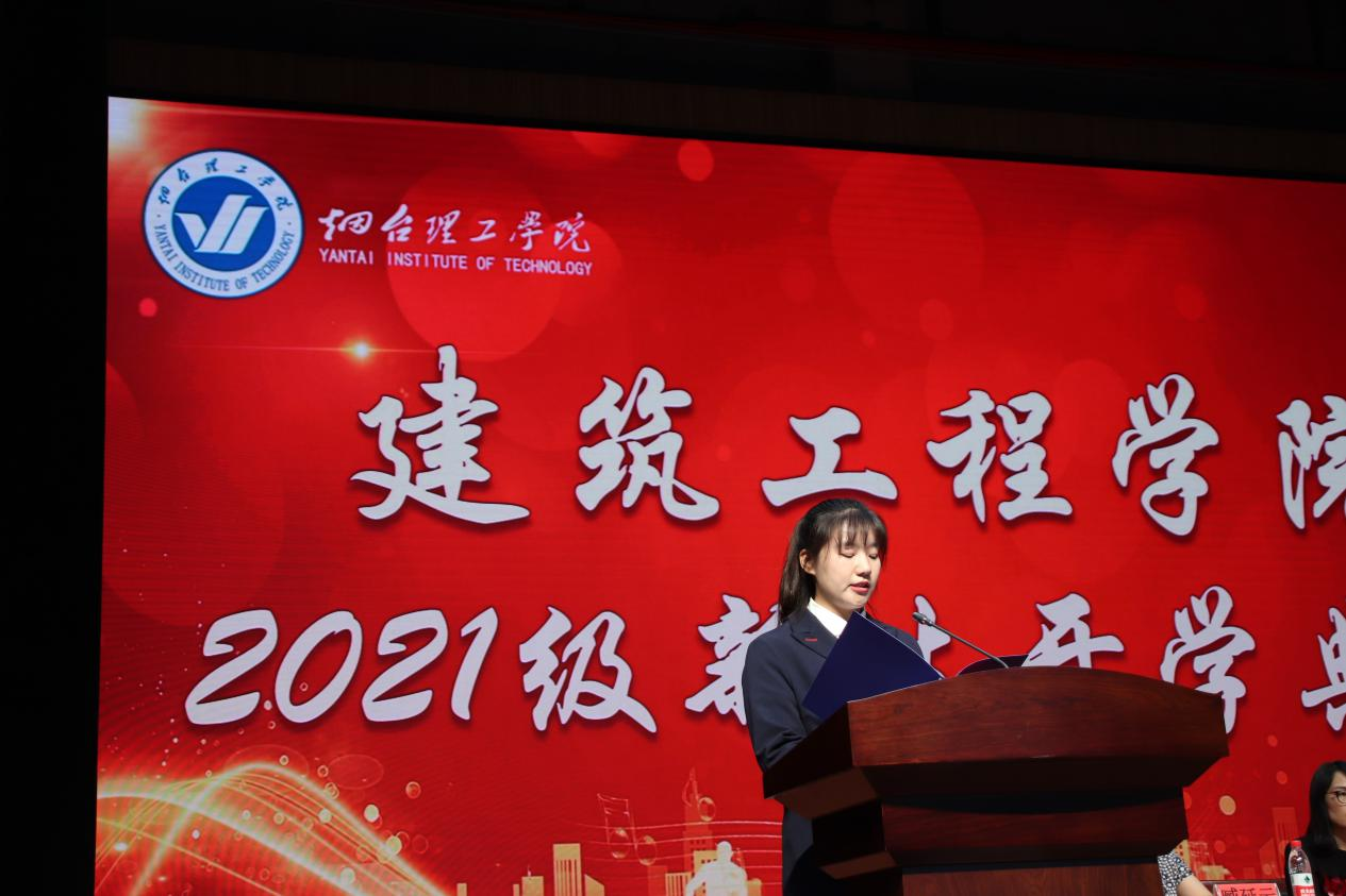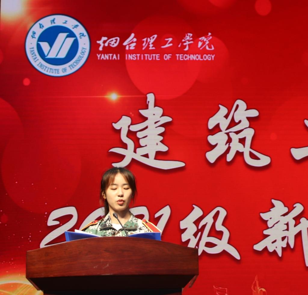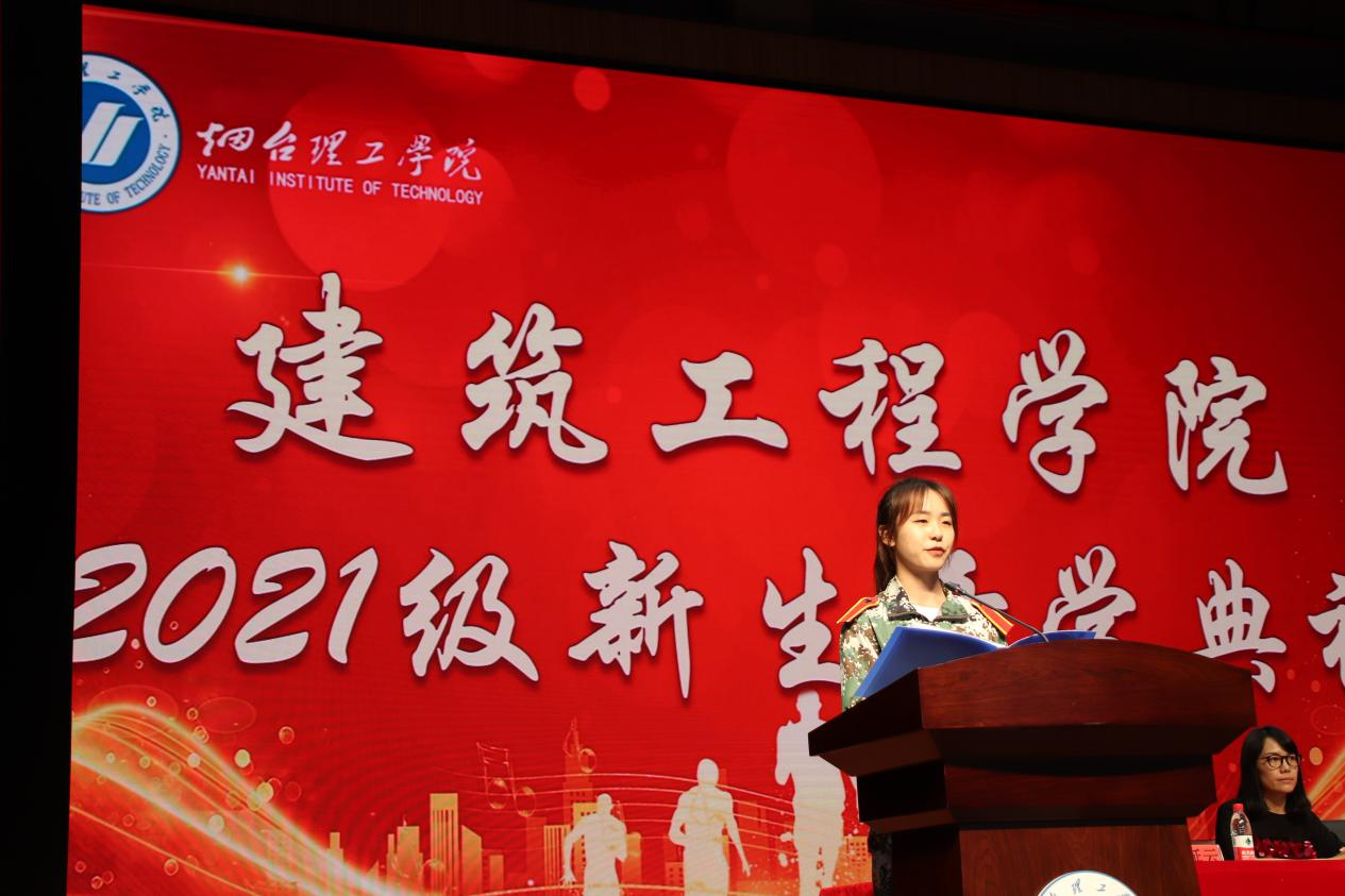 紧接着由来自环境设计专业的任若菡代表新生发言。她号召全体新生“坚持真理,坚守理想;贯彻伟大建党精神,不负时代,不负韶华,不负人民!”