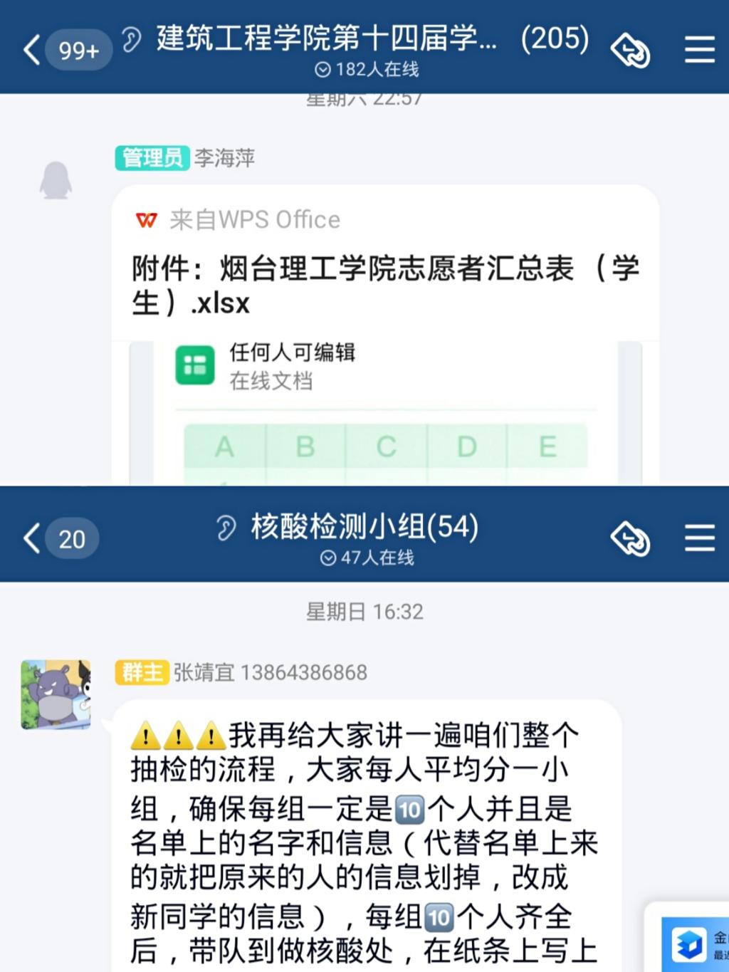 “有我可以干的事吗?算我一个!”“老师,身为入党积极分子,如有疫情防控工作需要我愿意成为一名志愿者,听从公司安排!”......建工学子张靖宜、李海萍、王中毅等员工会成员,在2022年开学之际,临危受命,作为太阳成集团tyc9728核酸检测志愿者总调度,与校医院的医生们一起肩负起校园疫情排查防控的重任。在短期内,他们已经组织核酸检测数次,他们始终奋战在校园防疫的第一线,守护校园安全。这些都是我们最可爱的建工学子。