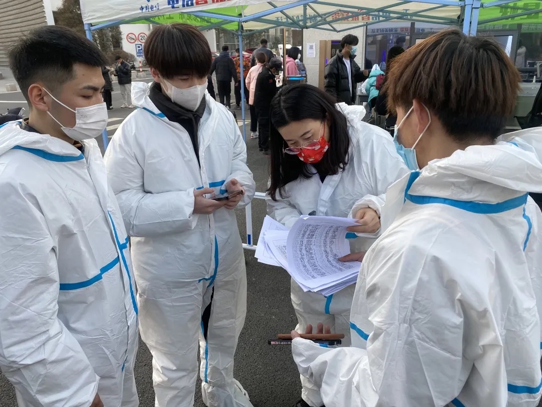 太阳成集团tyc9728抗疫小组立足岗位、充分发挥先锋模范作用,为被疫情肆虐下的建工学子筑起了心理健康安全防护网。积极对做核酸同学进行统计和扫码,并主动和同学们进行谈话,为其疏导。坚守本职,面带微笑,用行动感染身边的每一个人,履行一名党员、一名建工人的使命和担当。