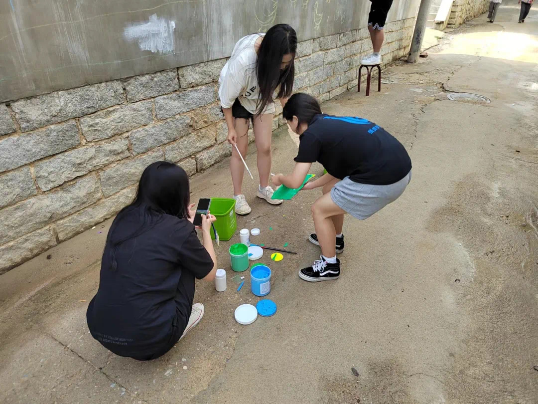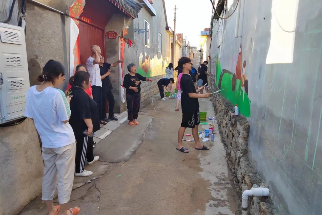 沐浴村是莱山区的一个明星村,为了让村庄再添亮点,更上一层楼,实践队经过过反复考察、调研磋商,在同学和村民的共同协商下敲定了设计方案,分工明确,共同开展墙绘活动。