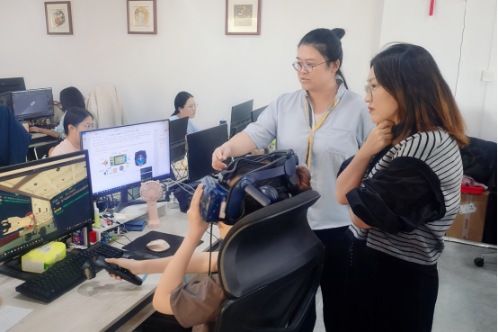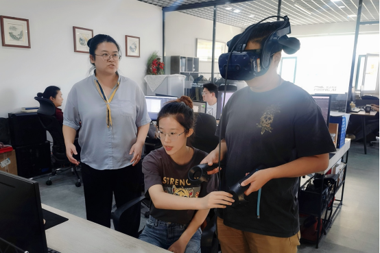 翼动智能负责人孙经理带领教师团队参观了公司的多媒体交互展示研发部及影视传媒研发部,详细介绍了近年来的发展情况及公司主营业务,包括:学科基础平台建设、慕课等课程资源建设、虚拟仿真特色专业建设、多媒体智能化场地建设、平面及3D设计服务等,并邀请教师进行现场体验,以及对人才引进及需求也进行了详细介绍。