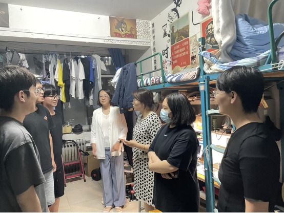 毕业班班主任走访毕业生宿舍,和毕业生谈心交流,给员工发放定制的离校礼物。
