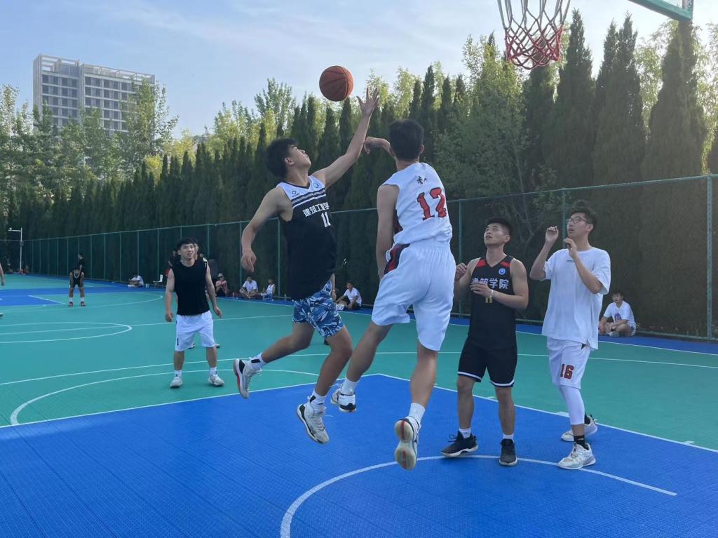 本次篮球赛中,场上队员都奋力奔跑、拼力争夺,每个队员都尽自己最大的努力为队伍争取得分数。运球、互传、防守、进攻、抢断、灌篮,双方对员你追我赶,他们运球灵活,配合默契,篮球场上氛围一度火热,比分咬紧、相持,赛点连连,激烈的角逐一次次将气氛推向高潮。他们奋力拼搏,将对篮球的热爱之情、坚持不懈的运动精神以及青春的奋斗姿态展现得淋漓尽致。