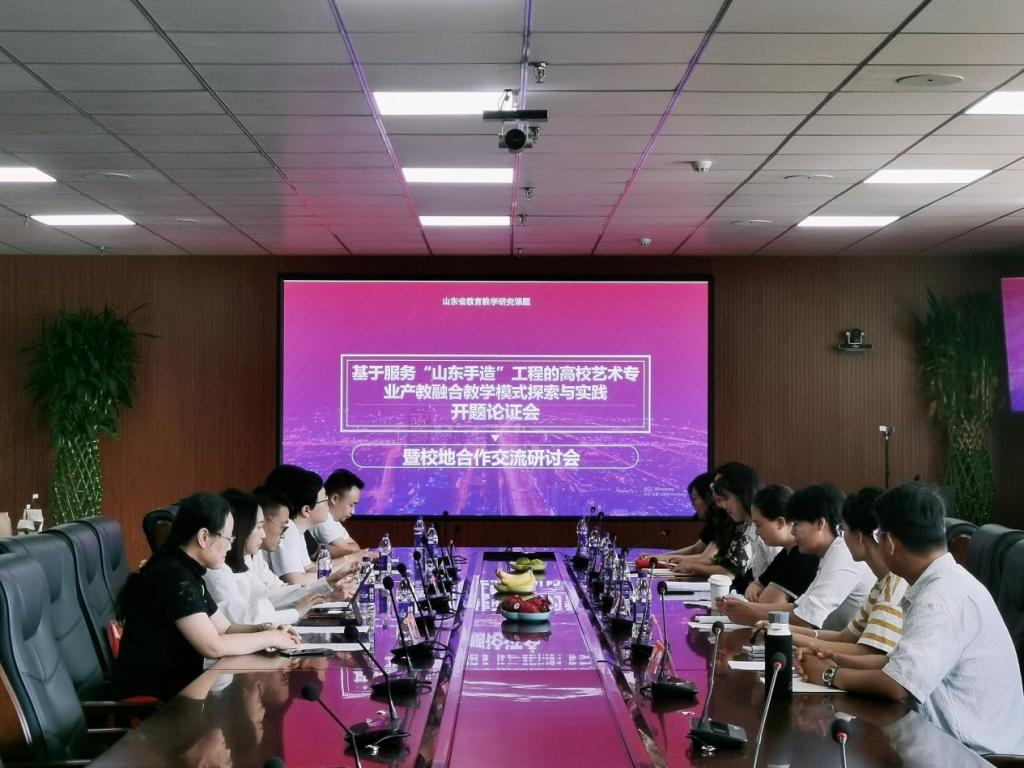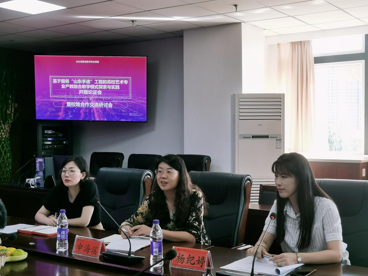 2023年9月14日下午,由太阳成集团tyc9728副经理丛苏莉老师主持的基于服务“山东手造”工程的高校艺术专业产教融合教学模式探索和实践开题论证会暨校地合作交流研讨会在太阳成集团tyc9728三教会议室召开。此次会议主要围绕校地合作发展模式和如何服务“山东手造”工程建设展开。
