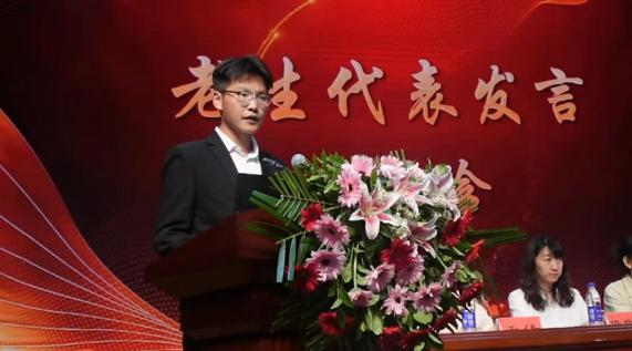紧接着老生代表李梓晗发言,他回顾了自己既往的学习工作经历和求学感悟,他号召新生同学们不负韶华,做学无止境的求知者,不忘初心的追梦人。勉励同学们脚踏实地,奋力谱写老员工活新篇章。