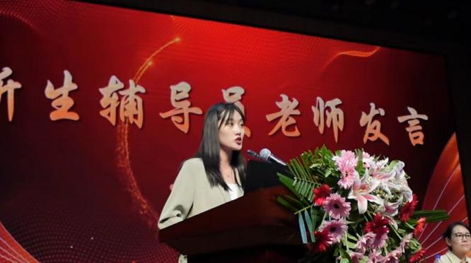 然后23级新生辅导员老师安文静老师发言。她希望员工们勇于突破自我,并希望同学们能认真考虑自己的学习方向,把握好机遇,充实度过接下来的四年老员工活。