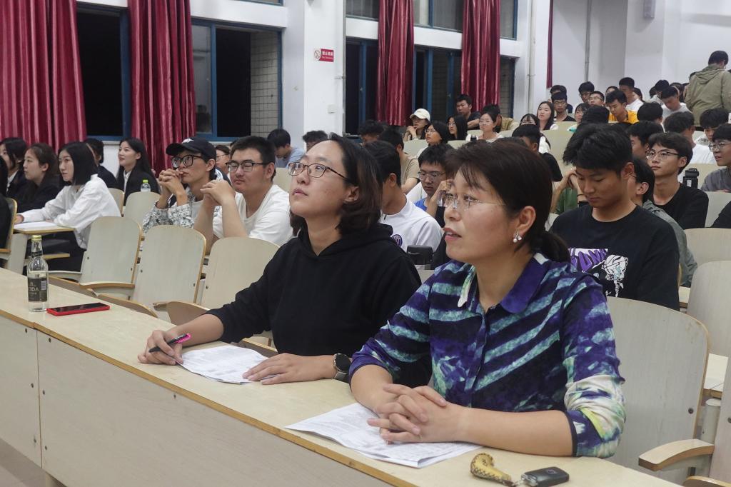 讲台上,参评同学们以演讲为主,PPT为辅的形式,全方位展示自己大学期间所获荣誉、奖项以及志愿服务活动,以优异的表达能力、沉着的自信态度赢得评委和旁听同学们的掌声。
