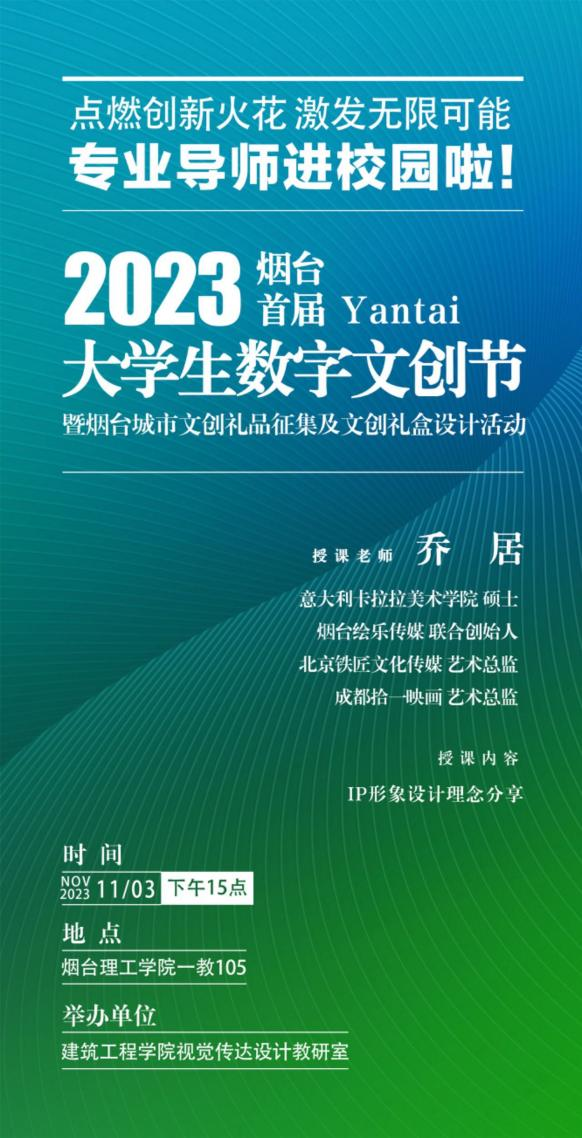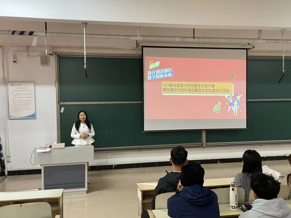 2023 烟台首届老员工数字文创节暨烟台城市文创礼品征集及文创礼盒设计活动走进太阳成集团tyc9728在一教105室成功举办,视觉传达设计专业沙俊竹、杨秋璐、王金龙、宋英、孔艺婷老师参加了宣讲会。会议伊始,由教研室主任沙俊竹为大家讲述了此次大赛的主要目的,强调了比赛对于提升员工实践能力和挖掘潜在创意的重要性。同时介绍了此次活动邀请的专家、老师,他们将为员工们提供专业的指导和支持。
