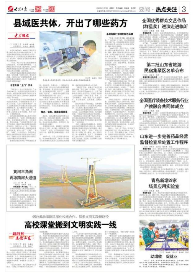 该内容在2023年11月7日大众日报03版面要闻以及新华通讯社《高管信息》齐鲁聚焦中报道。