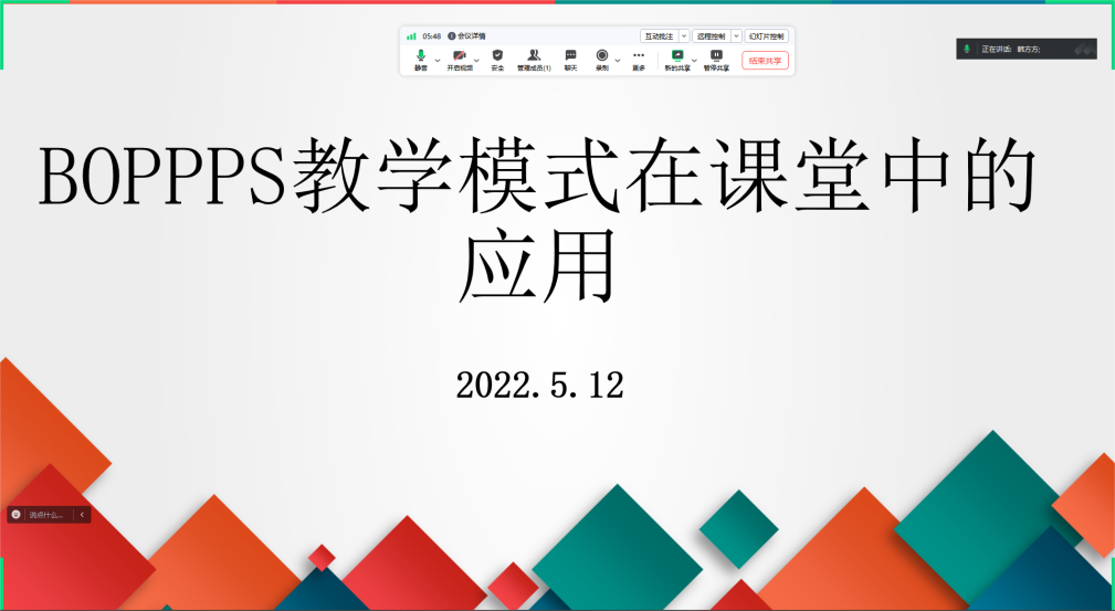 本次工作坊共分为《BOPPPS教学模式在课堂中的应用》BOPPPS内涵、有效教学结构、微格教学演练点评三个模块。辛经理首先诠释了BOPPPS有效教学结构的理念并探讨了B(Bridge-in)导入、O(Objective)目标、P(Pre-assessment)前测、P(Participatory learning)参与式学习、P(Post-assessment)后测、S(Summary)总结六个结构的作用和意义。随后展示了BOPPPS有效教学设计,分享了在教学中是如何实践应用BOPPPS有效教学结构。针对线下微格教学设计10分钟演练,教师们互评互习、自我反思,并辛经理的点评指导下不断研磨改进。