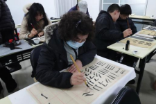 “一横一竖立正气,一撇一捺写人生。”两个小时的课程让大家意犹未尽、热情高涨,书法爱好者互相学习、互相欣赏,整个活动现场充满了浓郁的艺术气氛。