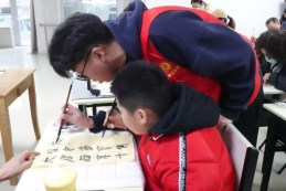 活动前期,志愿者们来到现场将桌椅摆放好,为学员们清洗书法工具,讲解书法基础知识等,为此次书法课堂的顺利开展奠定基础。