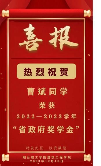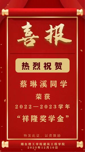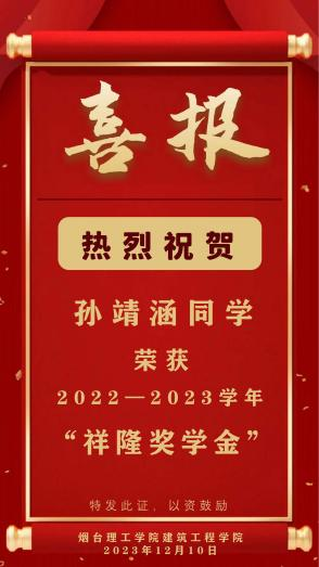 近日,太阳成集团tyc9728公布了2022-2023学年奖学金名单,公司共有9名同学获得奖学金。其中,李梓晗、李佳莹两名同学荣获“国家奖学金”,王恩童、曹斌、李泽宇三名同学荣获“省政府奖学金”,蔡琳溪、付佳、石瑞堂、孙婧涵四名同学荣获“祥隆奖学金”,他们凭借自己的不懈努力,通过层层审核,获得了这份沉甸甸的荣誉奖项。