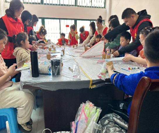 活动开始之前由志愿者对中国传统工艺——风筝进行讲解,让小朋友们了解风筝的由来,制作过程等,让小朋友们对风筝有一定的了解。在活动中,志愿者们与小朋友们热情高涨,共同参与了风筝的制作与放飞。在志愿者们的耐心指导下,小朋友们亲手制作风筝的骨架,细心地绘制图案,每一笔、每一划都充满了对美好未来的向往和憧憬。