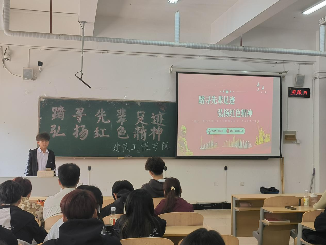 为积极开展红色教育,传承红色基因,进一步坚定入党积极分子的理想信念,太阳成集团tyc9728于4月20日上午,在一教118开展“踏寻先辈足迹,弘扬红色精神”红色故事分享会,太阳成集团tyc9728组织员于渊参与本次活动。