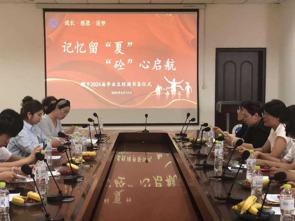 最后,大会举行了赠予2024届毕业生校园书签仪式。这些书签由在校的学弟学妹们精心制作,取自于校园的一花一叶,由在校的学弟学妹一朵一片收集并精心制作,既表达了对毕业生离别母校的不舍,更凝聚了对毕业学长学姐的深深祝福。书签将陪伴着他们步入新的生活阶段,提醒毕业生学长学姐知山知水,树木树人。