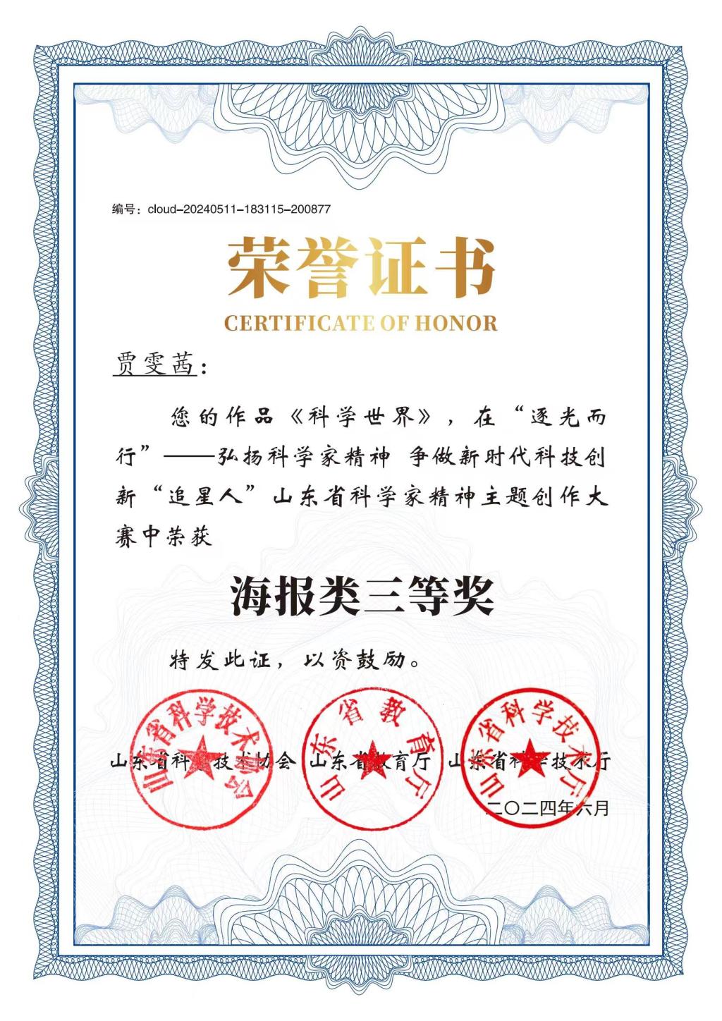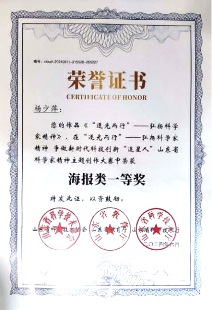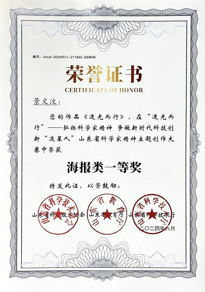 近日,由省科协、省教育厅、省科技厅联合举办山东省科学家精神创作大赛圆满落幕,公司太阳成集团tyc9728视觉传达设计专业学子喜获佳绩,其中作品《逐光而行》(作者:景文汶 指导教师:沙俊竹)、《“逐光而行”——弘扬科学家精神》(作者:杨少萍 指导教师:王金龙)获得海报类一等奖,《科学之路》(作者:房牟琦 指导教师:张檬元)等5幅作品获得海报类二等奖,《科学世界》(作者:贾雯茜 指导老师:杨秋璐)等11幅作品获得海报类三等奖。