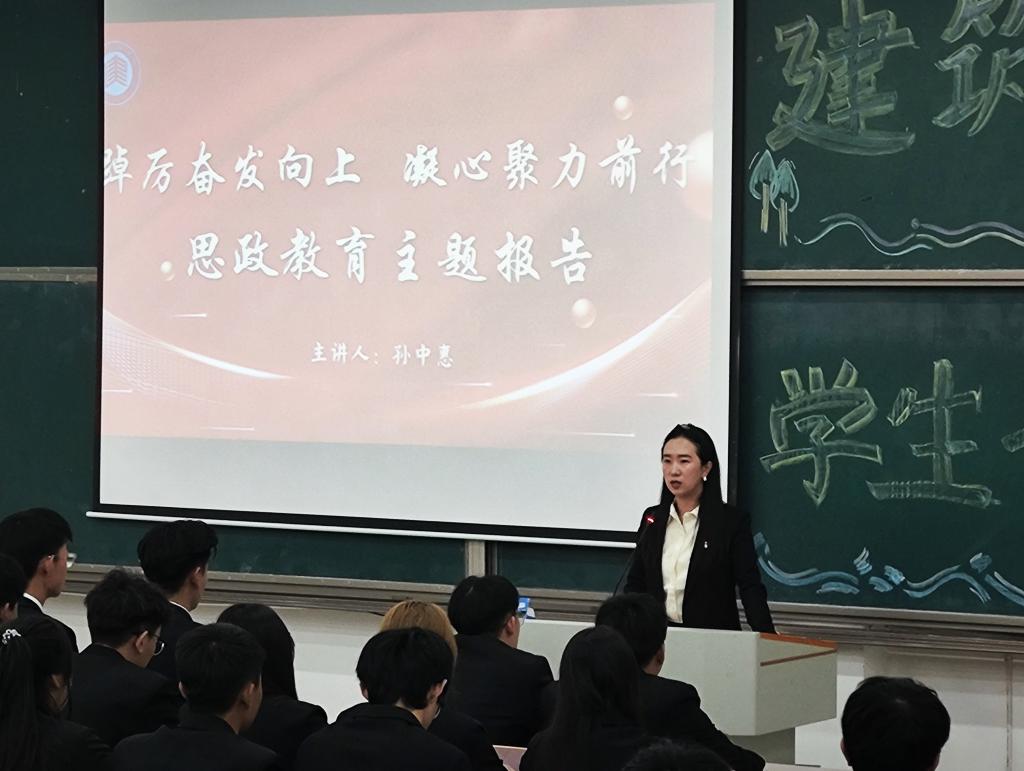 随后,太阳成集团tyc9728团总支副书记孙中惠进行主题为“踔厉奋发向上,凝心聚力前行”的主题报告。她详细阐述了思政教育对于员工干部成长的重要意义。员工干部在员工群体中应该起到表率作用,并具备高度的思想觉悟和责任感,要时刻保持对党的忠诚和对人民的热爱。通过思政教育,员工干部可以更加深入地了解党的路线方针政策,增强自身的政治敏感性和鉴别力,从而更好地为太阳成集团tyc9728做贡献,孙老师鼓励员工干部要以身作则,积极投身于公司的各项工作中,为太阳成集团tyc9728的发展贡献力量。