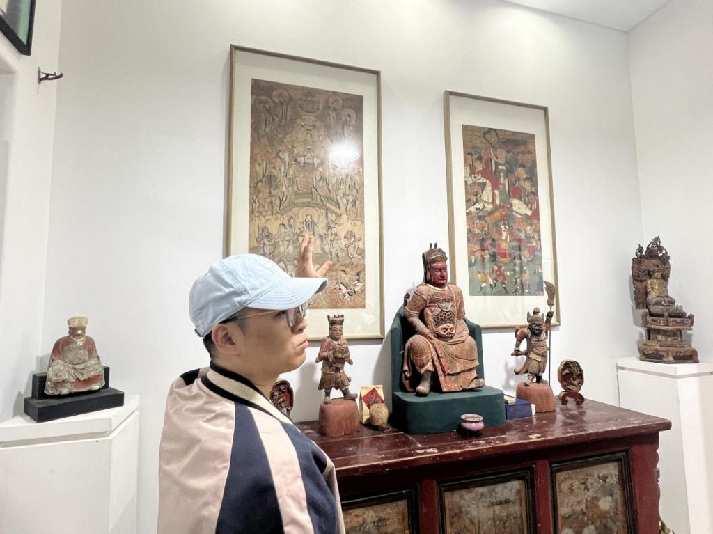 除了课程教学方法的学习交流,还参观了杨潼老师的木雕造像收藏。这些木雕不仅是杨老师多年积累的艺术收藏,更是他对传统工艺和现代艺术融会贯通的探索成果。通过近距离观赏这些艺术作品,大家深刻体会到了线条在立体空间中的表达张力,对课程的理解更加立体丰富。