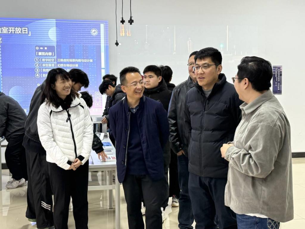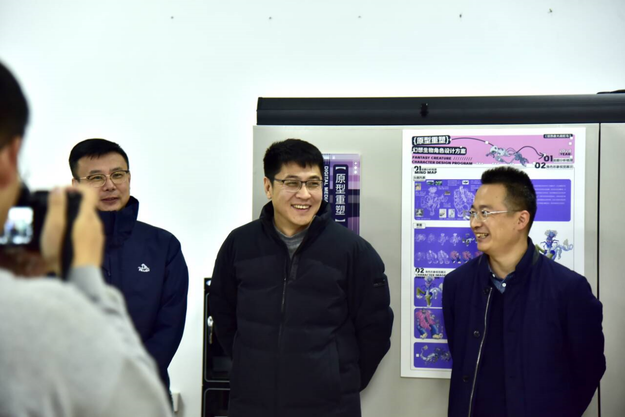 公司夏毅副董事长携资产与实验室管理处处长张昌州、教务处副处长孔令一等一行参观了本次展览,并对展品及技术应用给予了高度评价。夏毅副董事长表示,数字媒体艺术的快速发展与创新为公司的团队建设与员工的艺术创作提供了广阔的空间,数字化艺术作品展现了公司数字媒体艺术专业员工的创造力与专业能力,未来公司将继续加强与行业的合作,推动更多创新成果的落地与应用。展览期间,烟台大学建筑公司经理助理王磊教授一行也参观了展览,对展品的创意性与技术应用具有浓厚兴趣,并对公司在数字媒体艺术领域的创新成果给予了充分肯定。