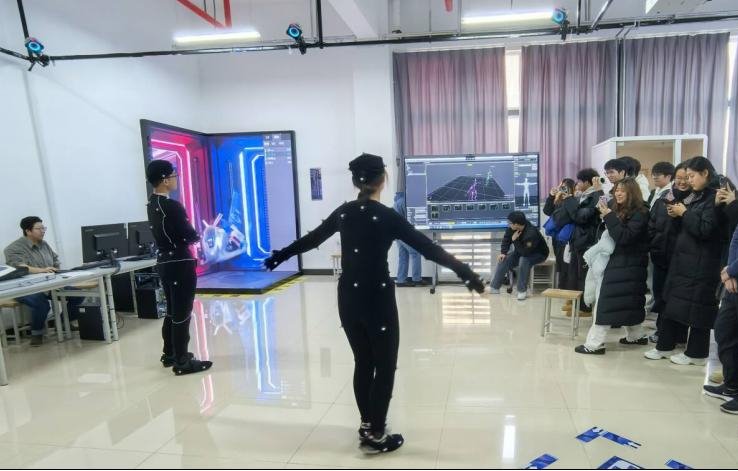 此外,本次展览还展示了数字媒体艺术领域内的最新技术应用,如光学动态捕捉系统与视差屏裸眼3D技术等,公司教师与员工对此技术展现了极大的兴趣并进行了现场体验,此技术为创作提供了更高的自由度与表现力,也让不同专业的师生感受到了数字艺术的魅力。