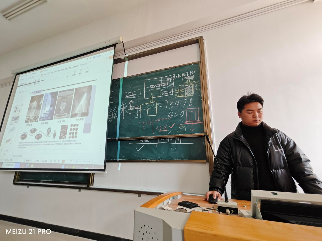 "我的方案以 ' 非遗传承 ' 为主题,运用模块化展墙和互动投影技术,希望通过沉浸式体验唤起观众对传统文化的情感共鸣。" 建 2203-1 班朱鹏程同学在汇报时介绍道。其他同学则分别从科技、生态、文化等不同维度展开设计,既有虚拟现实技术的前沿探索,也有可持续材料的创新应用,充分体现了环境设计专业的跨学科特征。