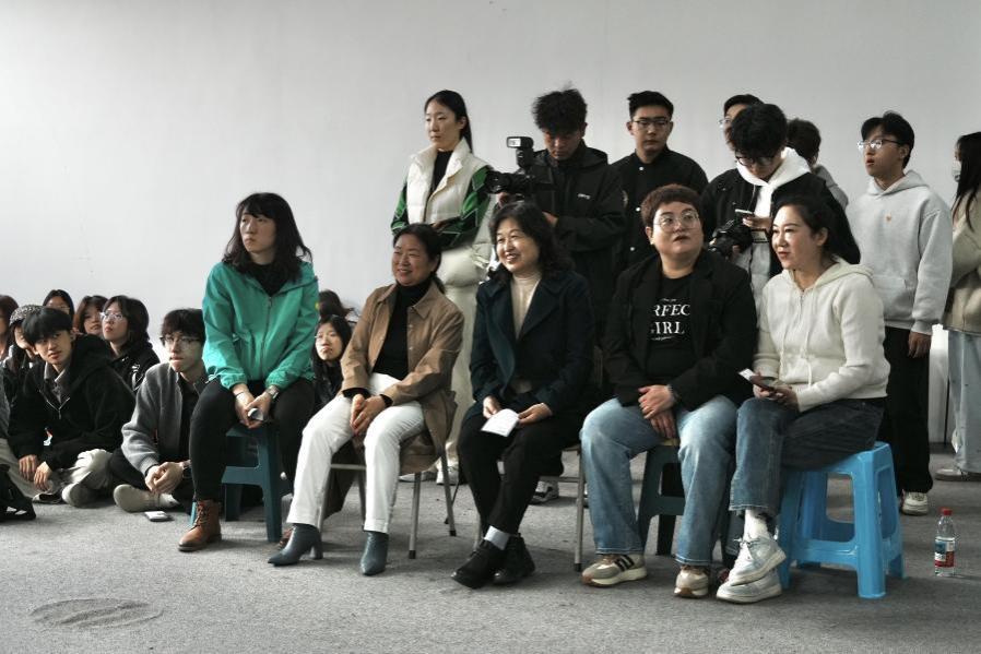 展演后数字媒体艺术专业教师安平老师又带领同学们进行了“建构思辨会”将会场化为学术情景剧场,围绕“纸质材料立体构成的三维转译”主题,以现场拆解作品的方式展开研讨。员工们跳出传统构成思维,转而探索材料在空间、虚实体量间的辩证关系。