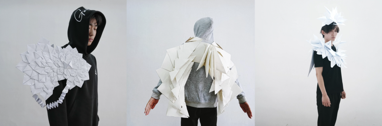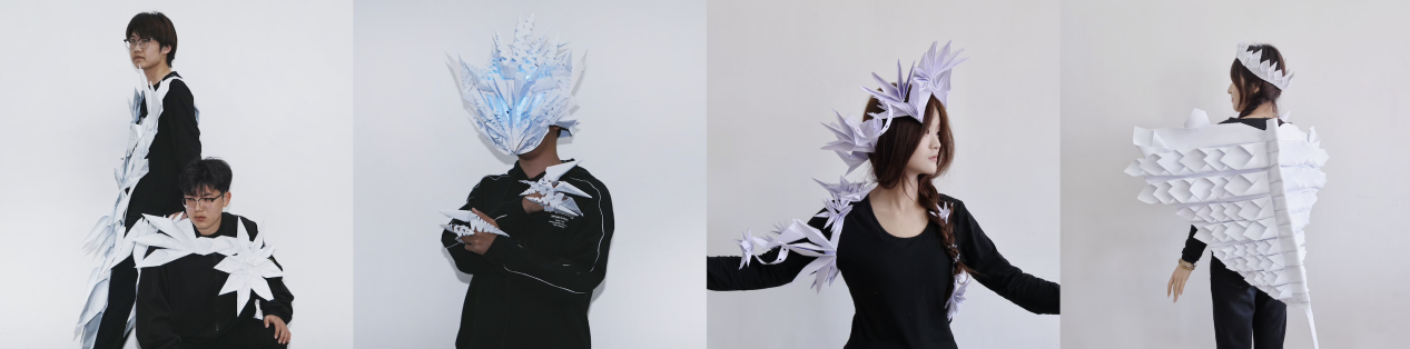 “我们如同建筑设计师般严谨构思结构布局,又似生物科学家般探索生命形态与未来科技感的融合,不断探索让二维纸材在三维空间中‘站立’,并赋予其生命感与未来科技感这一课题上的尝试与突破。”