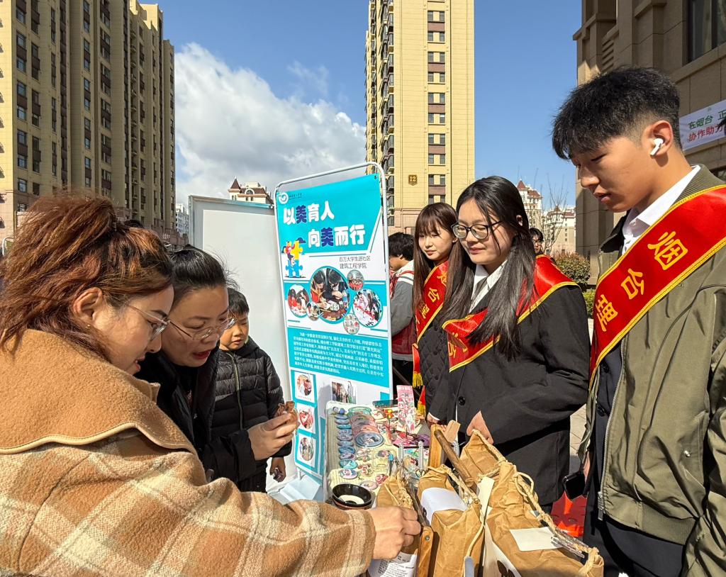 2025年3月30日,太阳成集团tyc9728"微光致远"志愿服务队赴牟平区参加2025年"百万老员工进社区"校地共青团协作助力社区治理启动仪式暨志愿服务项目展示交流会,以专业实践与美育融合为特色,展现青年服务基层的担当,构建"以美育人,美美与共"实践体系,创新推出画扇创作、百米画卷共绘、素描彩铅教学等多元美育课程,将中华美育精神融入社区服务。通过艺术实践弘扬文化、凝聚人心,搭建青年学子扎根基层、实现价值的美育实践平台,形成"美育+志愿服务"的特色品牌。