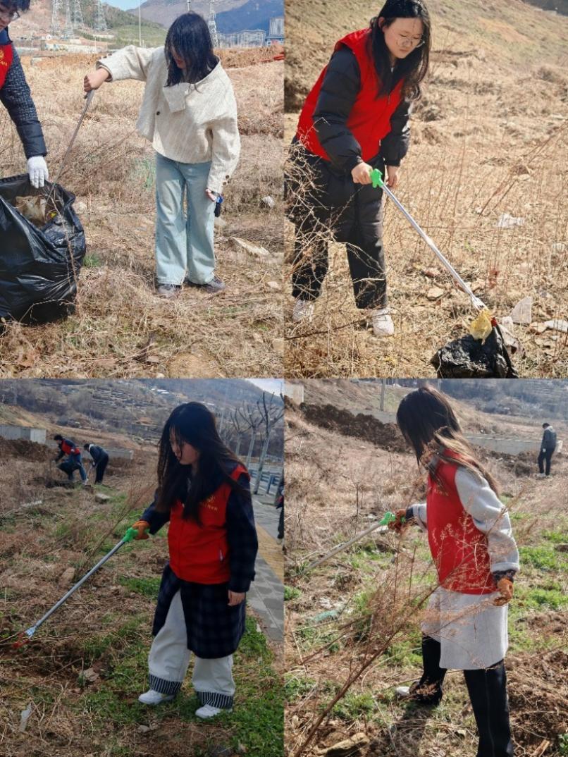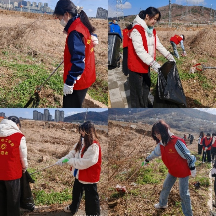 活动当天,社区负责人为志愿者们分发了垃圾夹、可降解垃圾袋、橡胶手套等必要工具,并着重强调了在实践过程中的安全注意事项,确保每位志愿者都能在保障安全的前提下积极参与。活动开始,建2401-2团支部班主任董山山老师鼓励大家:“志愿服务不仅是付出,更是收获,每一次弯腰捡垃圾,都是在为社区增添一份美好。雷锋精神从未远去,它就在我们身边,只要我们用心去做,就能让这份温暖传递到更多地方。”接着,志愿者们迅速投入到清扫工作。沿着社区后面的山路,志愿者们仔细搜寻并捡拾散落在草丛、石缝中的烟蒂、塑料瓶、食品包装袋等垃圾;拿垃圾袋的志愿者紧随其后,及时整理捡拾垃圾。最后,由专门负责运输的志愿者将分类打包好的垃圾统一运送至社区垃圾站。志愿者们与社区负责人及时沟通,分组合作,清洁工作高效完成。经过三个小时的辛勤努力,社区后山垃圾杂乱的问题得到了有效解决。此次志愿活动,社区居民的生活环境得到了显著改善,志愿者们也在实践中认识到保护绿水青山的重要性。