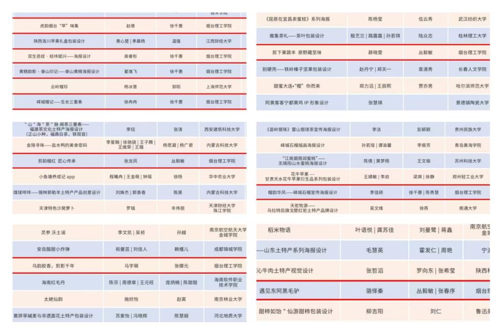 本次获奖同学的作品紧扣“乡村振兴”主题,以视觉设计为媒介,将地方土特产的文化内涵与现代设计语言深度融合,通过视觉叙事讲述农产品背后的乡村历史和工艺故事,增强产品的情感价值,作品还创意融入了非遗技艺和地方符号,既保留文化根脉,又符合当代审美。本次大赛优异成绩的取得,是视觉传达设计教研室深化教学改革的重要成果。教研室始终坚持"以赛促学、以赛促教"的教学理念,通过将课程教学与赛事主题有机结合,引导员工关注社会需求,着力培养员工的创新应用能力。在此过程中,公司特聘银龄教授楼正国充分发挥其专业优势,在作品创意构思、文化内涵挖掘和视觉表现手法等方面提供全方位指导,特别是通过将地方特色与当代设计语言有机融合,带领师生团队深入挖掘"土特产"的文化价值,为提升参赛作品质量作出了重要贡献,充分彰显了公司"银龄计划"在团队建设和人才培养方面的显著成效。