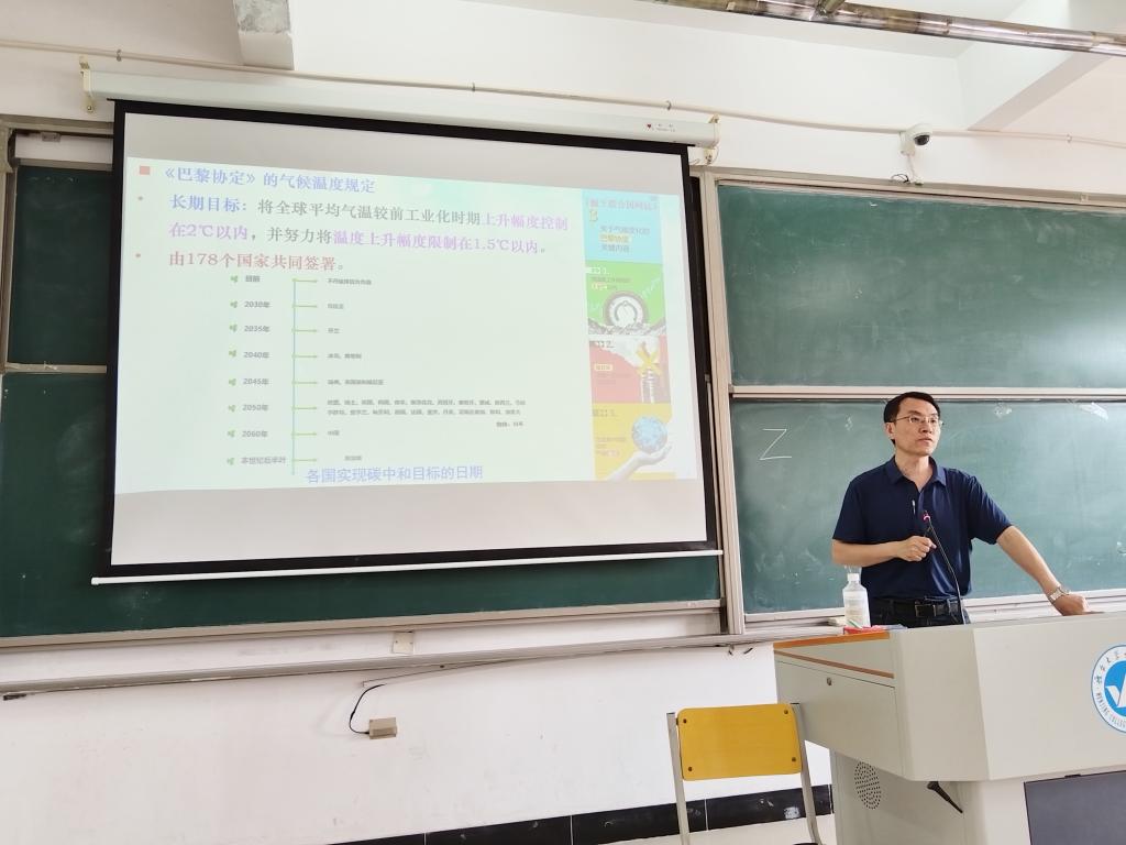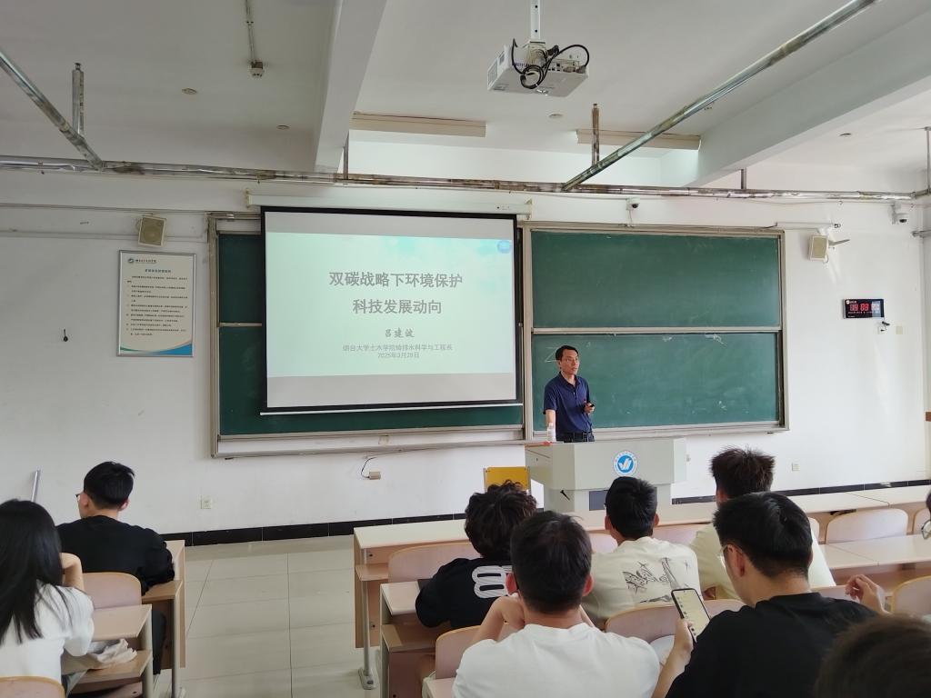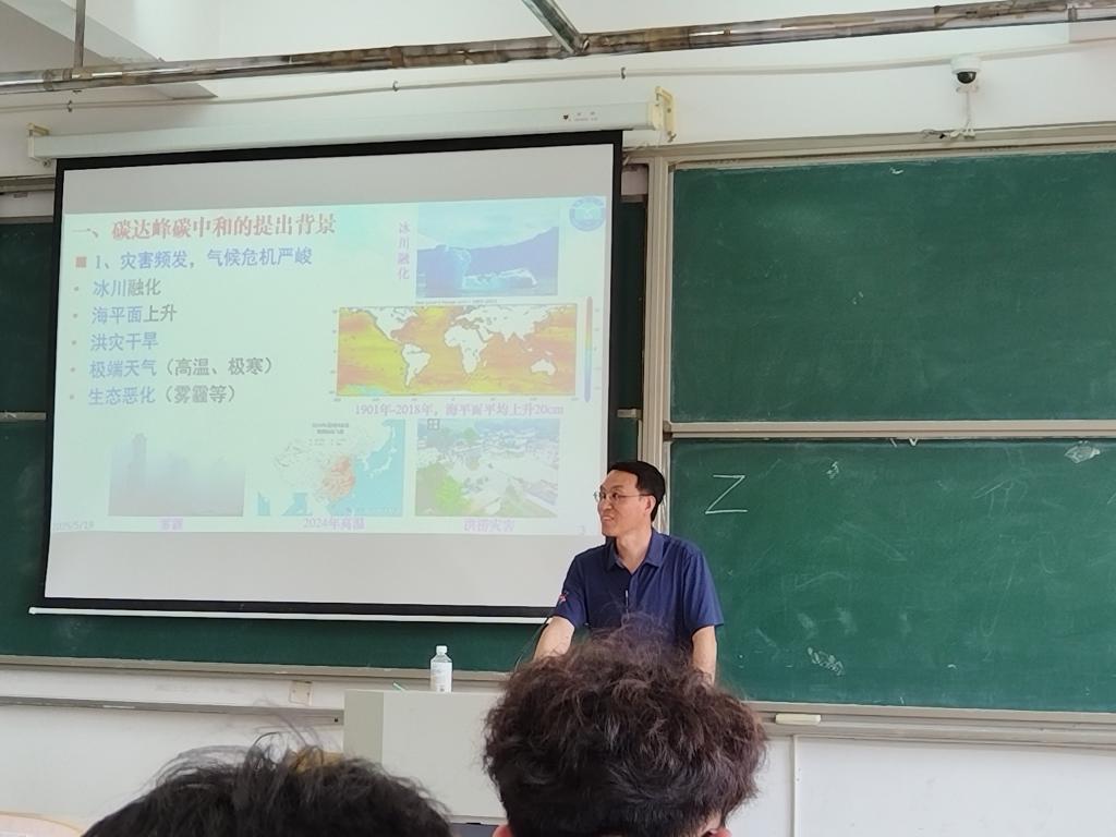讲座中,吕教授以“双碳”目标为切入点,系统阐释了碳达峰、碳中和的核心概念、政策背景及二者协同推进的必要性。他结合我国“2030年前碳达峰、2060年前碳中和”的庄严承诺,深入分析了“双碳”战略对经济社会转型、能源结构调整及公众生活方式的深远影响,并从大气、土壤及水污染防治技术角度,探讨了环保科技创新的前沿方向与实践路径。