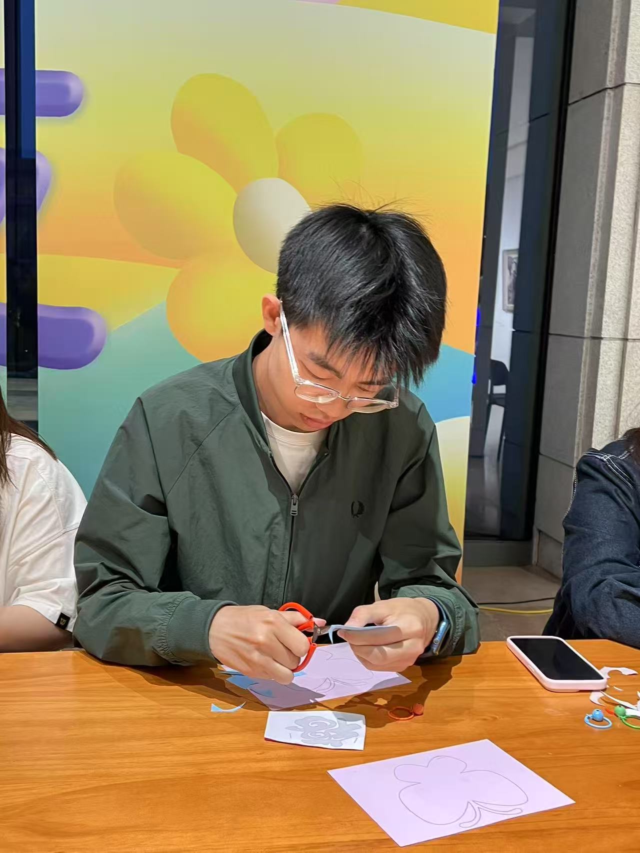 剪纸艺术作为我国古老的民间艺术形式之一,承载着丰富的历史文化内涵和独特的审美价值。活动现场,员工们在专业剪纸艺术家的指导下,从剪纸的基本技巧入手,学习如何运用剪刀和纸张创造出各种精美的图案。随后,员工亲手体验剪纸技法,在红纸上剪刻出栩栩如生的作品。现场还展出了30余件员工创作的现代剪纸,将校园生活、科技元素融入传统艺术,展现青春创新活力。