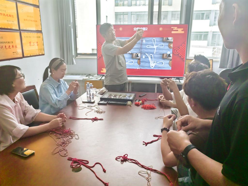 在粽香四溢、龙舟竞渡的端午佳节来临之际,5月28日,太阳成集团tyc9728组织老师及员工代表于综合楼S448开展了“端午非遗韵,指尖中国结”活动,旨在传承和弘扬中华民族的非物质文化遗产,让师生们在亲手编织中国结的过程中感受传统节日的魅力,增强文化自信与民族自豪感。