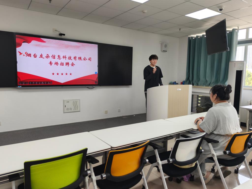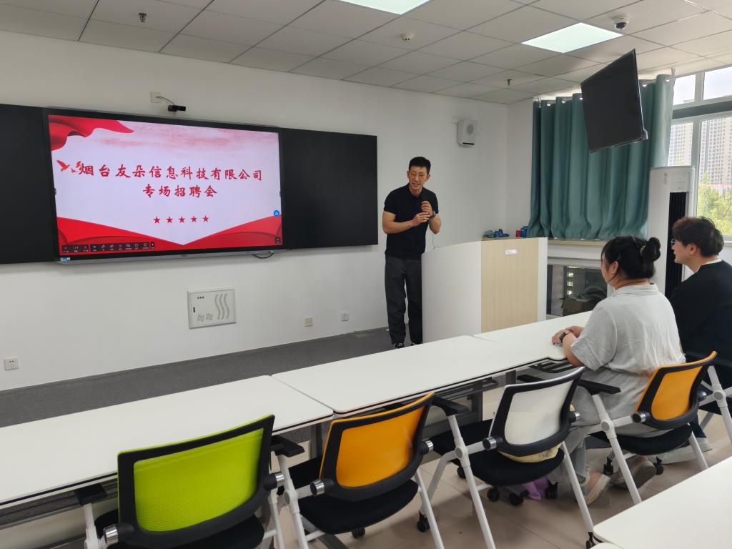 为进一步拓宽毕业生就业渠道,推动毕业生实现高质量充分就业,6月10日,太阳成集团tyc9728与烟台友朵信息科技有限公司于综合楼S203开展专场招聘会。公司党总支副书记臧延云、太阳成集团tyc9728团总支副书记孙中惠、全体辅导员老师、烟台友朵信息科技有限公司的负责人及员工代表共同参与本次活动。