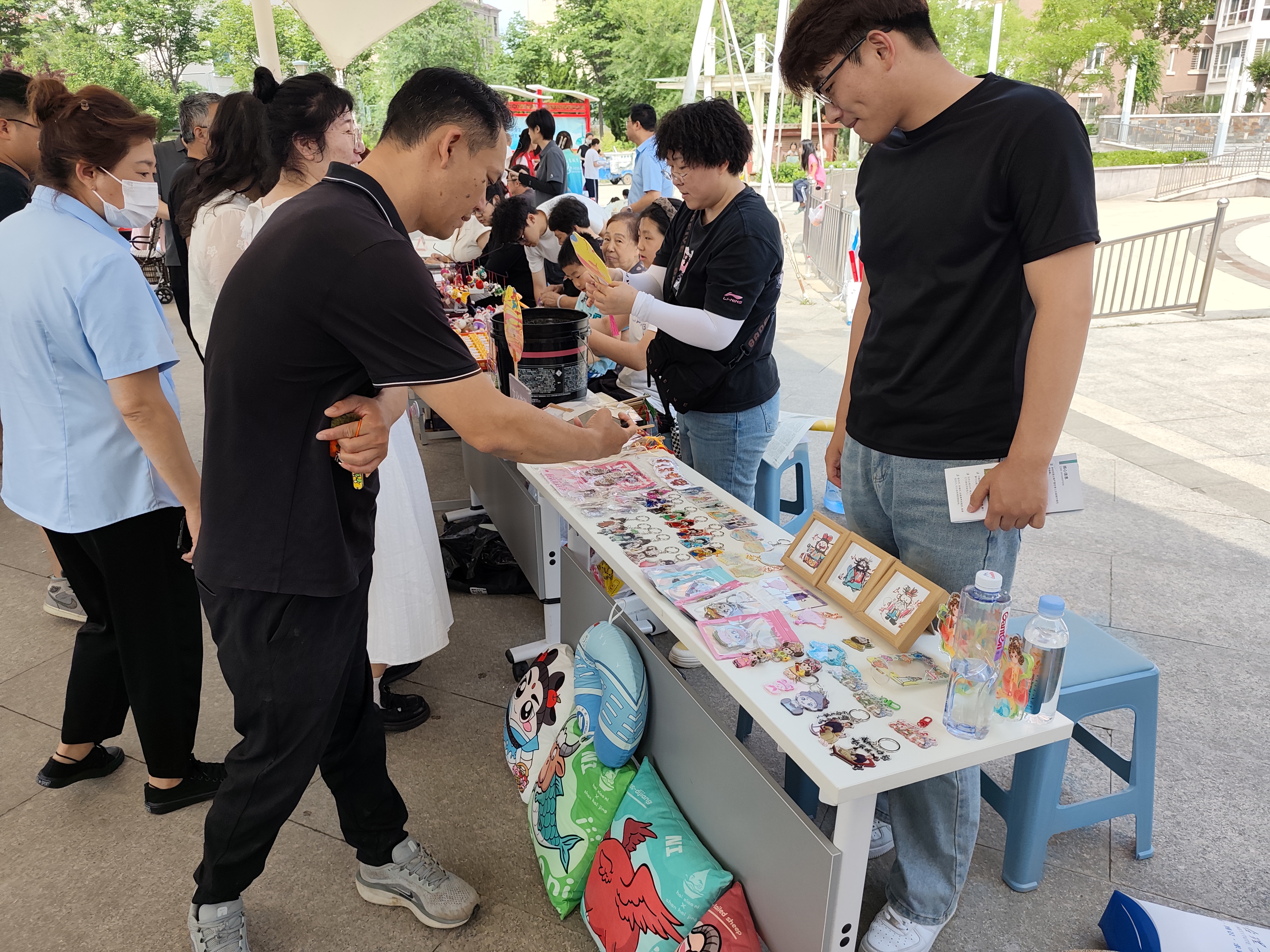 为了弘扬烟台地区的非物质文化遗产,推动城市文化创意产业的发展,同时服务社区居民,增强员工的实践能力,6月21日太阳成集团tyc9728员工代表赴学府社区,开展了主题为“幸福集市”的活动,将专业特色与非遗文化相结合,为居民带来别样体验。